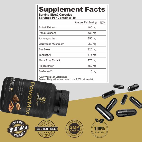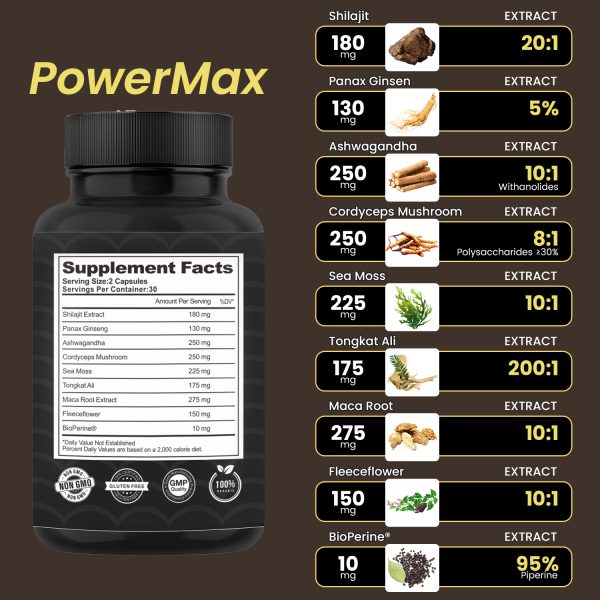PowerMax helps improve focus and mental clarity thanks to ingredients like Panax Ginseng and Ashwagandha. Take it before work or study sessions to stay sharp, reduce mental fog, and enhance productivity.